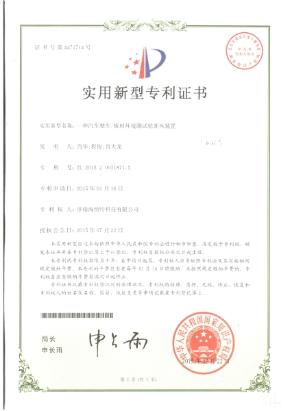 - 一種汽車整車/板材環境測試艙新風裝置