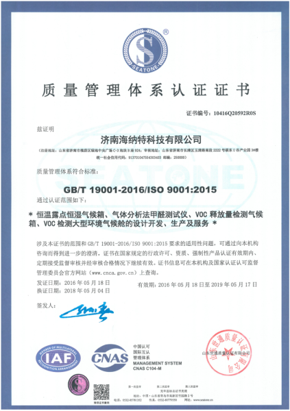 - ISO9001質量管理體系認證證書