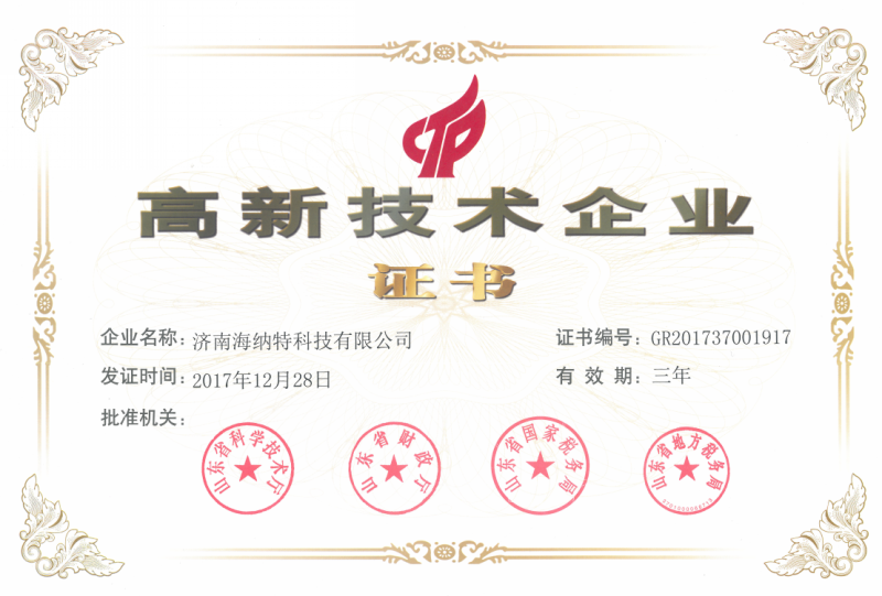 - 高新技術企業證書