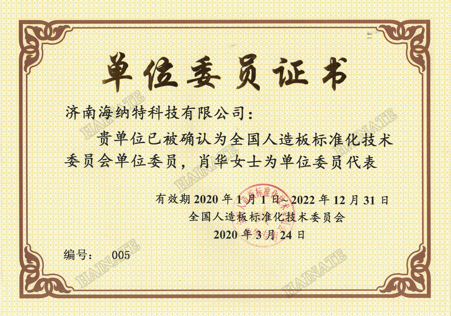 - 全國人造板標委會委員證書